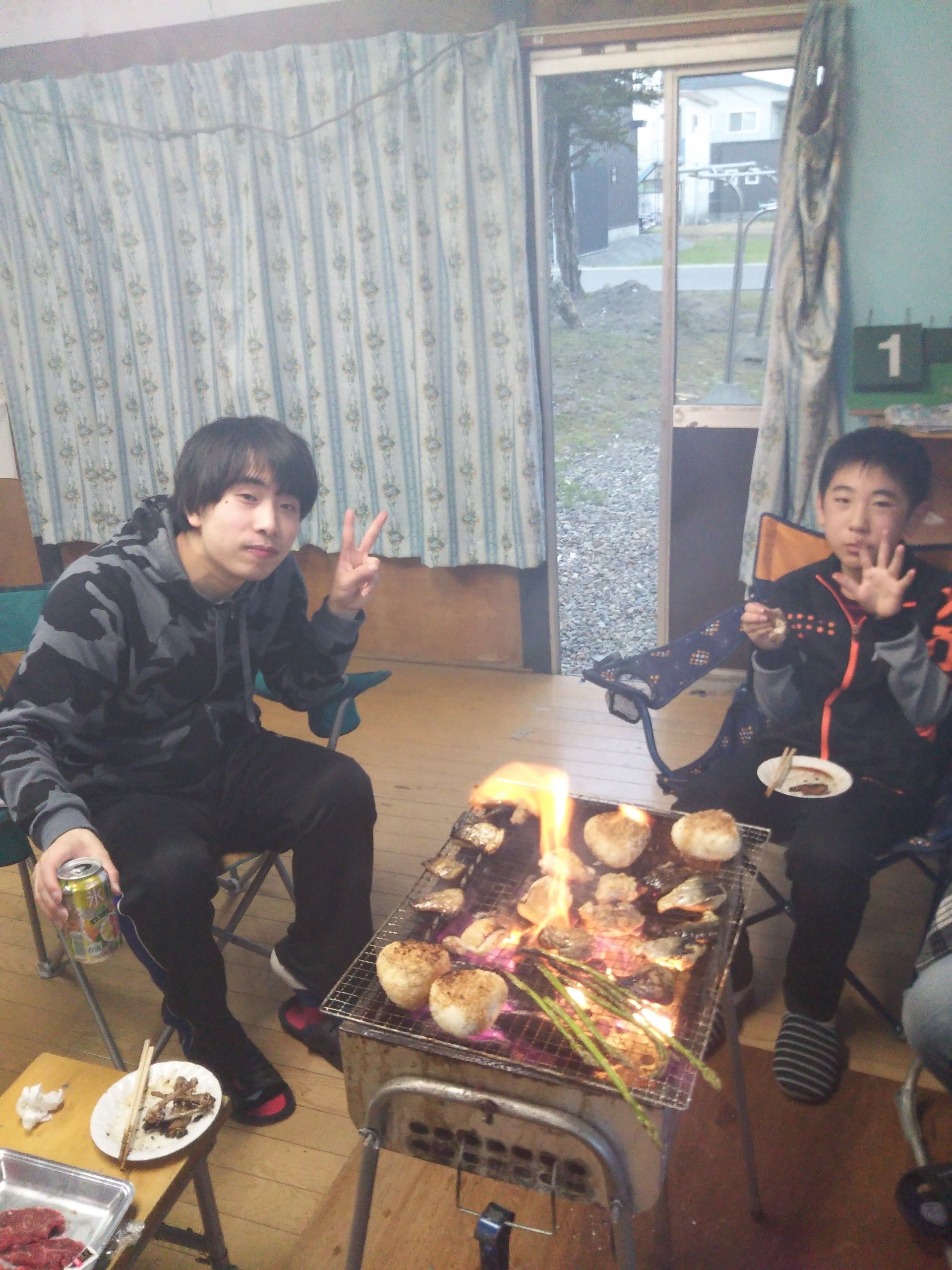 北海学園卓球部時代は長男のダブルスパートナー今は飲み仲間の中村くんです。 今日は一人で呑むのは寂しいので、炭焼BBQに無理やり呼び出しましたな(^(ェ)^)