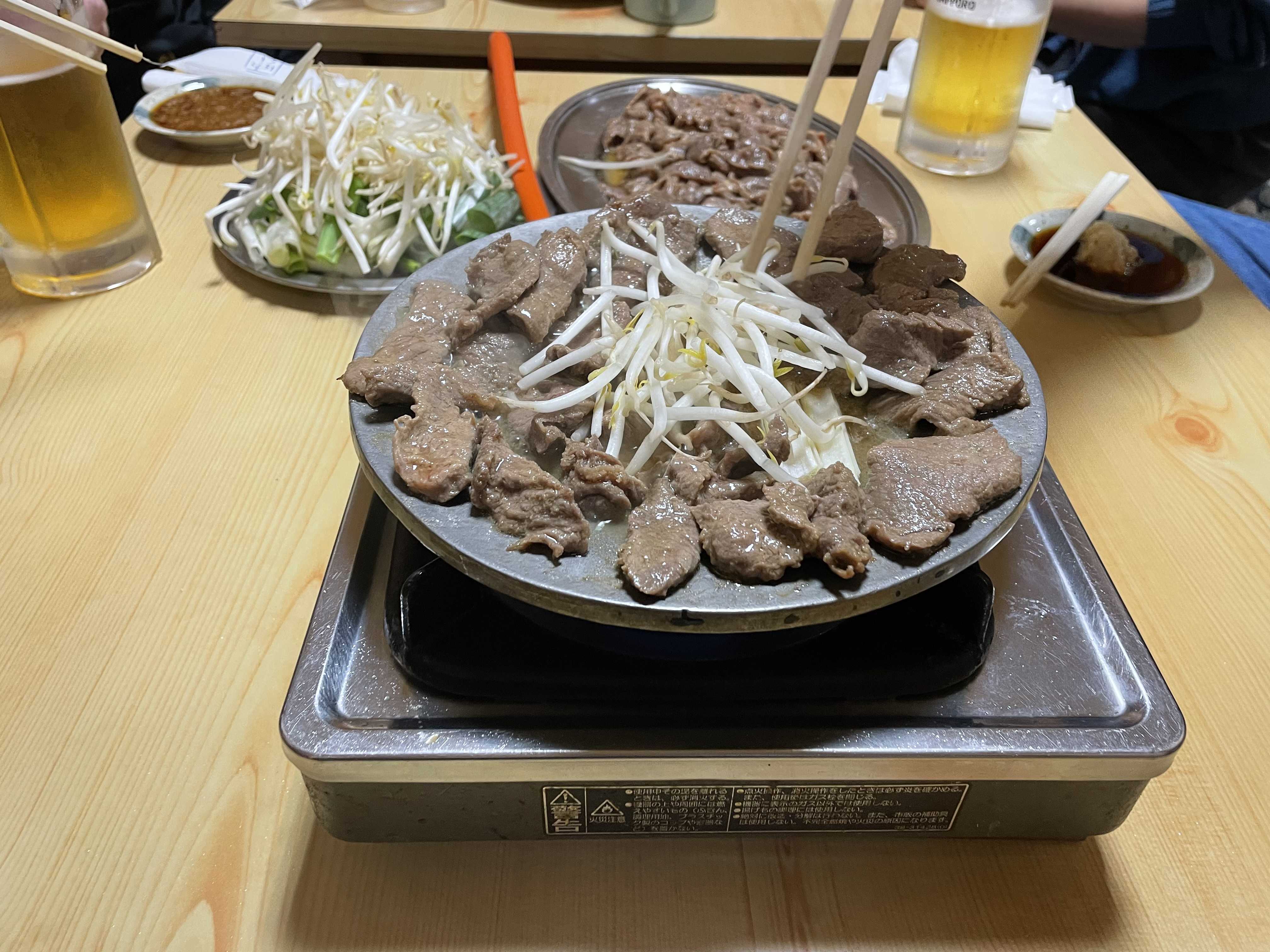 焼肉、定食、焼鳥義父母の送迎で北広島市へ、義父母は義父の姉宅に宿泊しましたが、私は札幌市に宿泊しました。今回は白石区でまとめてみました。まずは、JR白石駅から歩いて10分の「炭び焼肉金太郎」でホルモン中心で攻め込みました。ビール、ハイボールで美味しくいただきました。二次会は定番の「なっきょい」です。肉が続きましたが、鶏と豚をいただきました。ランチは12号線沿いの「定食や」です。次男と3人で、チキン南蛮、エビフライ、唐揚げ・メンチカツをいただきました。何度も通っておりますが、今回初めていただいたメンチカツは老齢の私には油ギッシュ過ぎましたか(苦笑)帰り道、北広島市を10時に出発。12時30分に旭川市付近を通過したので、高速を降りてランチを。義母の希望は回転ずしでした。美味しいものを食べすぎましたなぁ笑