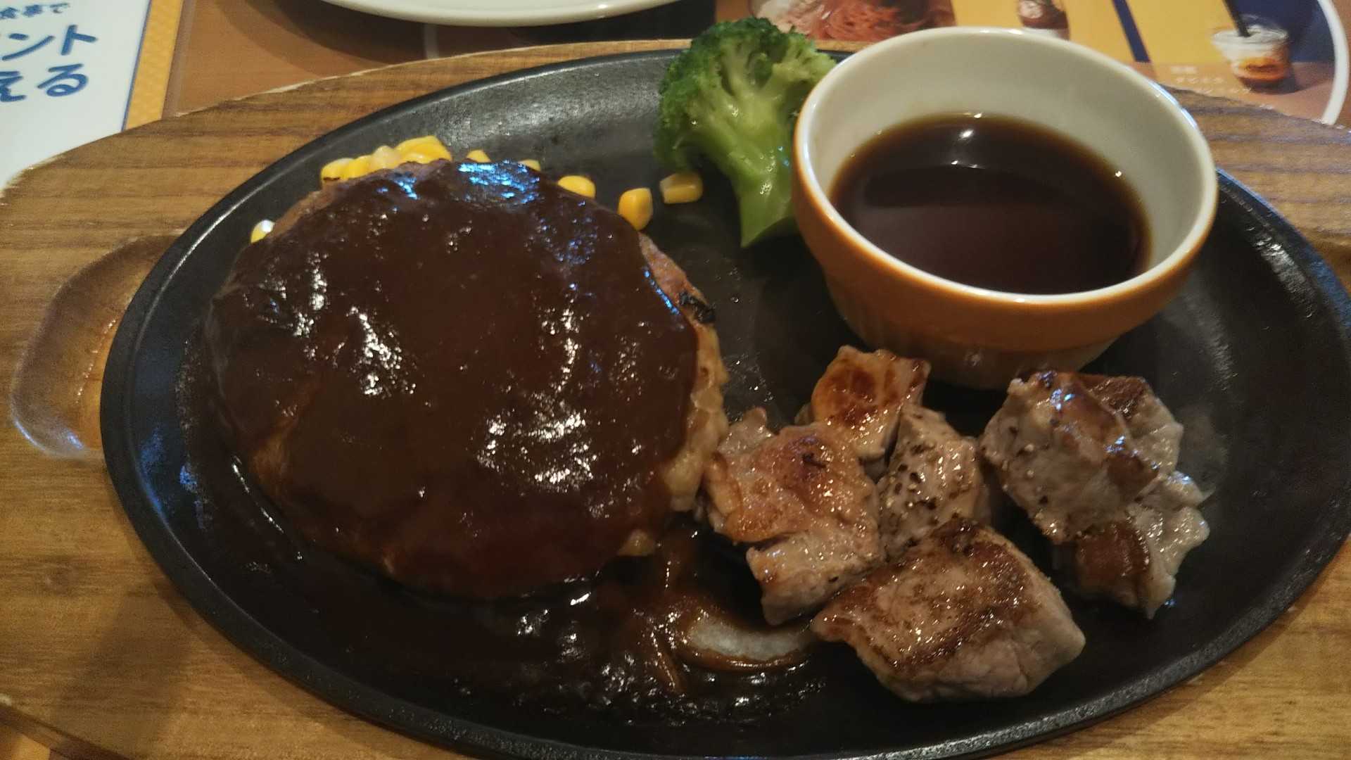 私はチーズINハンバーグとカットステーキセットです。