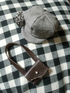キャスケットは、ちょっと寂しかったのでコサージュもどき(糸くず?)をつけて、バッグは革で作りました。