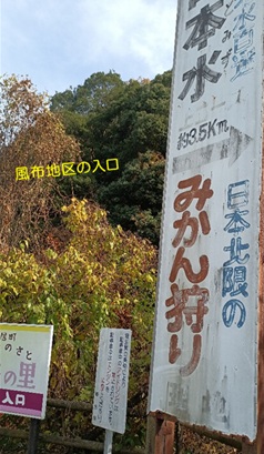 一旦、風布地区の山道入口で紅葉を眺めました。