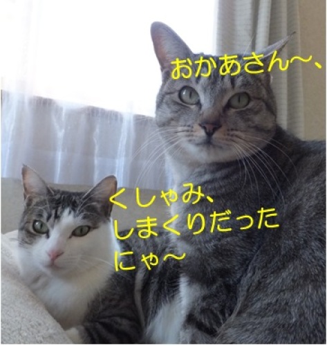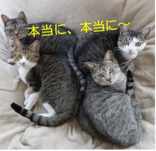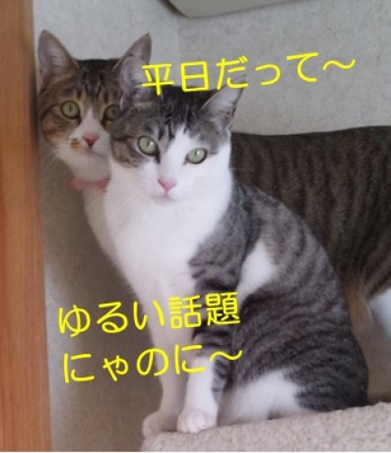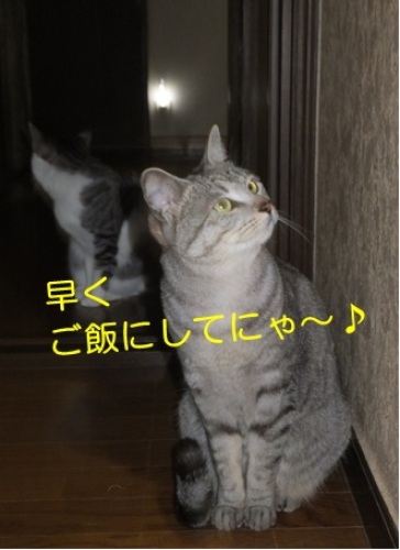 昨日の夕飯の時間、例によってトラちゃんファミリーの元気の良い、ご飯コールが響いていました(*≧ω≦)はい、は~い♪ダイニングのドアを開けると、珍しくとらぞーきゅんがポールポジションをゲットしていました?そして~、3姉妹がお行儀良く、廊下に等間隔で並んでいますね~ん?なんかが変…あ、母猫トラちゃんがいないんだわ!いつもご飯コールは、先頭を走ってくるのにどうしたんでしょう?そして、2Fのトラちゃんルームへ到着しても、姿が見えません。あの筋金入りの「腹ペコーニャ」が、ご飯の時間に寝てるのかしら?だとしたら、相当具合がワルイのかも?どーしよー(*゚Д゚*)「トラちゃーん、トラちゃーん!」と、家の中で絶叫しました(ToT)→超近所迷惑すると、どこからか、か細い鳴き声が微かに聞こえてきました。「ふにゃ~、ふにゃ~…」と、か細いけどトラちゃんでしょうか…ん?腹白ユニットが、タワー最上段で叫んでいます。え?ま、まさか?押入れの中?慌てて、戸を開けると、怒り心頭のトラちゃんが出てきました~そういえば、使用済シーツを包む古新聞を補充してる時、足元でうろちょろしてたわね~、ごめんね~(-∀-`; )何時間くらいかというと…でも、2時間くらいかな?そ、そうですね(-∀-`; )実は数年前、寝る前にペコさんをキッチンに閉じ込めてしまい、朝まで気付かなかったことがありました。しかも、真冬…ホントにもうしないから~、それは、勘弁してね( ̄▽ ̄〃) ★ご訪問ありがとうございます★ ★お手数ですがポチッとお願いいたします♪★ ♪バナー画像は、リクエストされたモノを使用しています♪ ♪毎週日曜日に変更しています♪ ◆ペコ用お礼編:リクエストいただいた方々ココナッツ0403 さん、flamenco22 さん ◆トラちゃんファミリー用世界遺産チャコ編: リクエストいただいた方 元お蝶夫人さん ★リクエストいただいた方のHNを表示させていただいてますが HN出しがNGであれば削除しますので、お知らせください★