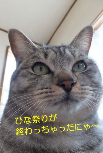 本日は、桃の節句、ひな祭りの日ですね~以前、アップしましたが、kumaru04家ではひな人形の代わりに、絵手ぬぐいを貼って、労力をエコしました( ̄m ̄〃)まったく、ペコさんったら~…その通りだけど(≧m≦)天井近くに貼り直したおかげで、今のところ無事で~す♪何とか、今夜一晩、頑張って任務を完了してほしいものです。…と、絵手ぬぐいの無事を喜ぶ私に、ペコさんから一言。2Fに?何かしらね~?トラちゃんファミリーは、お父さんのベッドでお昼寝中ですよ~…おぉっ、これは~~♪ほんとだわ~( ´∀`) もうすぐ、春ですね~(ノ≧▽≦)ノ ★ご訪問ありがとうございます★★お手数ですがポチッとお願いいたします♪★◆ペコ用◆トラちゃんファミリー用