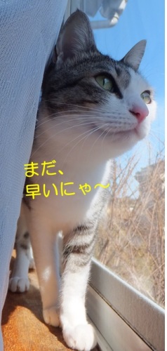お彼岸の中日だった昨日は、晴れたり曇ったり、落ち着かない天気。そんな時、姉妹で仲良くお寝んねしている、チャコとミランですが…あ、ミランは起きて、何かを見つめている様子。声をかけようとした次の瞬間、窓辺にダッシュしましたが~?お、ということは~大変お待たせいたしました、庭の白木蓮が咲いたそうです(*´∀`)我が家の白木蓮は、お隣の2Fの陰になっていて、若干開花が遅め。おまけに、手前のエゴの木の枝が少々邪魔ですが~今年は、急激な気温上昇で満開に近くなっています♪それと、ちょと珍しい画像が撮れたのでご披露しま~す♪これはですね~、レースカーテンを全開したところ、窓のおかげで窓辺にいるミランと、窓に映った白木蓮が並んで見えたんです~♪ありがと、とらぞーきゅん(人∀≦+))次は、とらぞーきゅんのナイスショットを撮れるように頑張るね♪ ★ご訪問ありがとうございます★ ★お手数ですがポチッとお願いいたします♪★ ♪バナー画像は、リクエストされたモノを使用しています♪ ♪毎週日曜日に変更しています♪ ◆ペコ用晴れ着編:リクエストいただいた方々flamenco22 さん、monica.beさん◆トラちゃんファミリー用四つ編:リクエストいただいた方ココナッツ0403 さん、レオン&まいあ さん ★リクエストいただいた方のHNを表示させていただいてますが HN出しがNGであれば削除しますので、お知らせください★