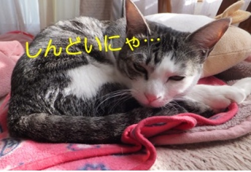 今は元気になりましたが、昨日・一昨日と、3姉妹の次女ミラン(2歳)の体調が芳しくありませんでした。一昨日の日曜日、朝食後に嘔吐した後は、終日食欲もなく窓辺や布団の上で大人しくしていました。頭を上げるのもしんどそう、こんな時、見ている方が辛いですよね、冗談でなく、ソロモンの指輪がほしい!って、切に思うのです…。「一日くらい何も食べないからって、大げさな」と、思われるかもしれませんが…食べるのが大好きで、ご飯やオヤツを残すなんて考えられない子たちです。主治医の獣医さんも「太目な子ほど食べない、という症状が怖い、僕は顔が引きつっちゃいます。」とおっしゃっています。脂肪肝のリスクが高くなるんだそうです。昨日の朝は、病院へ連れて行こうと思っていたら、いつものように、親きょうだいと、ご飯コールに参加してきました♪ドライフードに煮干しをトッピングすると、ドライは残したものの、大好きな煮干しはきっちり食べました。食欲が戻ったので、午前中の診療は見合わせ様子を見ることに。その後、若干大人しいものの、階段で追いかけっこをしたり、ご飯もいつもの半分は食べていたので、病院へは行きませんでした。今朝はすっかり元気な様子で、普段の3分の2程度のご飯を食べ、チャコにくっついて二度寝中です。原因はわからないのですが、しばらくは要監視です!ご心配をおかけする気はなかったのですが…こういう事情で、毎日の楽しみであるブロ友さんへの訪問やコメントの返信が遅れております(*m_ _)mこれから伺いますので、今後ともよろしくお願いします∩( ´∀`)∩ ★ご訪問ありがとうございます★ ★お手数ですがポチッとお願いいたします♪★ ♪バナー画像は、リクエストされたモノを使用しています♪ ♪毎週日曜日に変更しています♪ ◆ペコ用晴れ着編:リクエストいただいた方々flamenco22 さん、monica.beさん ◆トラちゃんファミリー用四つ編:リクエストいただいた方ココナッツ0403 さん、レオン&まいあ さん ★リクエストいただいた方のHNを表示させていただいてますが HN出しがNGであれば削除しますので、お知らせください★