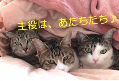 昨日から急に暖かくなりましたね~トラちゃんも目を細めて、ご満悦♪こんな健康的な母親とは対照的な娘がひとりいます( ̄m ̄〃)布団乾燥機をセットしているお父さんの布団に潜り込み、ひとり、「かくれんぼ暖」を楽しんでいる子は~…やっぱり、とらぞーきゅんでしたか(*^m^)ママもきょうだい達も、ペコおばさまでさえ、窓辺で寛いでる、そんな良いお天気の日でも、マイペースな末っ子ちゃんです♪まぁ、チャコが遊びたがっているので、そのままにしとこ♪タワーでチャコが遊んでいるのは、キャットニップ入りマウス。チャコのお気に入りで、最近、押入れの引き戸の上に置くとファミリー全員で身体を伸ばして取ろうとします。それに応えるべく、私も手を伸ばしてのせてあげていますが、大抵、チャコが一番乗りで次がミラン、という順位で…おぉ!いつ布団から出ててきたのか?とらぞーきゅんが一番乗りを果たしました(ノ≧▽≦)ノこれには、他のふたりもびっくり(≧▽≦)でも、最終的には、チャコがゲットしちゃいました~やっぱり、とらぞーきゅんはのんびりしてるのね~( ̄m ̄〃)ん?誰のことかしら(-ω- ?)★ご訪問ありがとうございます★★お手数ですがポチッとお願いいたします♪★◆ペコ用◆トラちゃんファミリー用
