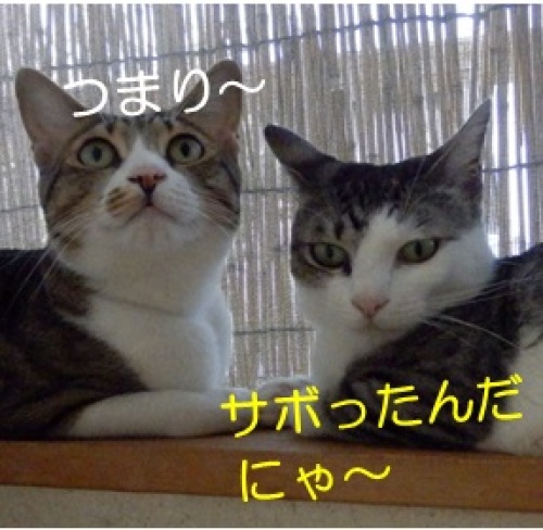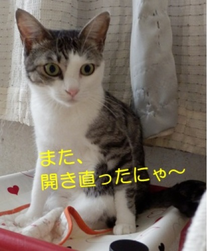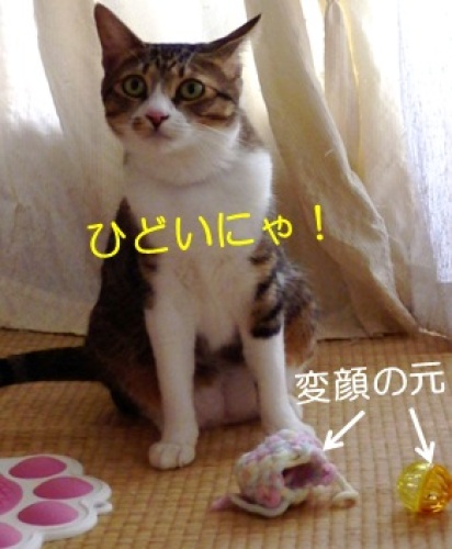 チャコが、ご機嫌ナナメです。昨日の記事で、「変顔」をアップしてしまったためです( ̄▽ ̄〃)まぁ、確かに「フォトジェニック」とキャッチしているのに、「変顔」は、まずかったなぁ、と反省しておりまする(≡ε≡;A) ごめんね~、悪気はなかったのよ~(-∀-`; )(両手の間から、余多肉が見えてますよ~( ̄m ̄〃)でもね、どーやって、オモチャが解体されたか、プロセスをお知らせしないと、ココナッツさんに失礼でしょう?お詫びのしるしに、「フォトジェニック」に相応しい、可愛らしいショットの、チャコ特集にしますね~♪ね、可愛いショットばっかりでしょう(人∀≦+))チャコは、ほかのふたりがそっぽを向いてても、必ず、カメラ目線になってくれるもんね~♪あら、かえってご機嫌ナナメになっちゃった(・∀・;)その上、この暑いのに、お父さんベッドの布団に潜りこむ始末!いくら、夏用とはいえ、布団の中じゃ暑すぎる~と思っていたら、困ったときの、ペコ姐さんが出動♪おぉ、的確な説得♪はいはい、ただいまご用意しておりまする~(-∀-`; ) ★ご訪問ありがとうございます★ ★お手数ですがポチッとお願いいたします♪★ ♪バナー画像は、リクエストされたモノを使用しています♪ ♪毎週日曜日に変更しています♪◆ペコ用:6/19の「顎がかけやすい編」リクエストいただいた方:ココナッツ0403 さん◆トラちゃんファミリー用:6/19の「確かにねぇ編」リクエストいただいた方:ココナッツ0403さん