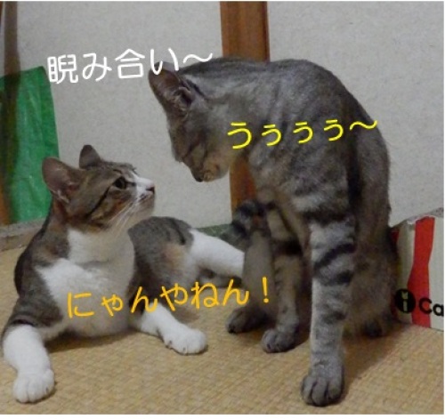 喧嘩らしい喧嘩は、ほとんどしないトラちゃんファミリーですが…珍しく、チャコととらぞーきゅんが、バトってるようです(-∀-`; )バトルの原因は、ズバリこれです!元お蝶夫人さんからいただいた、ニャンコ爪とぎ。爪とぎという、本来のミッションを超越し、ある時はソファー、ある時はベッドとして、ファミリーの日常に溶け込んで、早や数か月。気づけば、相当使い込まれてます~そして、気づけば、バトルも終わった模様、早っ( ̄▽ ̄〃)最近は、とらぞーきゅんがベッドとして使っていることが多いので~お蝶さん好きなチャコとしては、面白くなかったのかも( ̄m ̄〃)だからといって、2段モックに八つ当たりしないでくださいな~また、恍けちゃって~お手手の下の、ほら、ポールをご覧なさい (。っ・Д・)っ他のオモチャ等と同様、段々、無残な姿になるのね~( ̄▽ ̄〃) ★ご訪問ありがとうございます★ ★お手数ですがポチッとお願いいたします♪★ ♪バナー画像は、リクエストされたモノを使用しています♪ ♪毎週日曜日に変更しています♪◆ペコ用:6/29の「何もしなかったくせに♪編」 リクエストいただいた方:flamenco22 さん◆トラちゃんファミリー用:7/4の「嬉しいにゃ~編」リクエストいただいた方:ココナッツ0403さん
