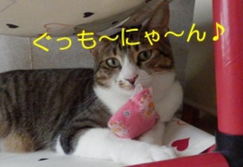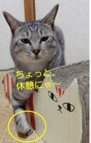 先日、寝る前にトラちゃんファミリーを遊ばせていた時のことです。ニャンコ爪とぎの上で、休憩をするとらぞーきゅんの、右手(右前脚)を、ご覧ください。妙な曲げ方してますよね(*´・ω-)b?ねぇ、とらぞーきゅん、それって、痛いの?ほんと~に? 傍らで、タワーのミランにオモチャを投げている、お父さんに、「変だよね~?病院連れて行った方がいいかな~」と、言ってみると「あ、その手、良くやるよ~♪」と、あっさり。えぇぇぇΣ(Д゚;/)/ 知らないわよ、見たことないわよー!!!「え、そう?」どうして、いつも一緒にいる私が見たことなかったのかしら?なんか、ショックだわ~( ̄▽ ̄〃)…何?ペコさん?うん、そだね(^^:; ★ご訪問ありがとうございます★ ★お手数ですがポチッとお願いいたします♪★ ♪バナー画像は、リクエストされたモノを使用しています♪ ♪毎週日曜日に変更しています♪◆ペコ用:6/25の「りかばり♪編」 リクエストいただいた方:flamenco22 さん◆トラちゃんファミリー用:6/23の「箱すわりチャコ編」リクエストいただいた方:ココナッツ0403さん