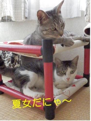 改めて書くまでもありませんが、毎日お暑うございます( ̄▽ ̄〃)高知では、4日も続けて40℃超えとか!どなたさまも、適切な水分・休憩を心掛け、お身体ご自愛ください。かくいう私も、買い物は暑くならない午前中、ばいしくるで、尚且つ、イオンドリンク必携で行っております。途中、ご近所の方にお会いして、「こんにちは~」と挨拶すると、返事は「暑いですね~」確かに、他に言葉が浮かびません(*≧ω≦)そんな暑さをものともせず、新しい遊びに夢中の猫が( ̄m ̄〃)「きなこ入りのカゴベッドに、突進する」という、新たな遊びを開発したトラちゃん♪どうやら、1回ごとにカゴベッドを横に傾ける必要があるらしく、お父さんにサポートさせて、楽しんでいます。…お父さんも楽しんでいるみたいです(*≧ω≦)お父さんがいない時は、突進スピードを調整し、自力で傾けて、マイブームを楽しんでいます(*^m^)母猫トラちゃんのマイブームが理解できない、とらぞーきゅんは、私の膝の上から、冷やかに眺めた後…お気に入りの2段モックで、寝んねしました、ってあれ?下段なのね(*≧ω≦)そういえば、買った当初は上段の取り合いだった、2段モック、このところ、下段の人気がキテます(*≧ω≦)チャコも~もちろん、ミランも~ということで、3姉妹には、下段がブームになってます(≧▽≦)ん?ペコさんが、また何か発言させろと、言ってますが…でもな~、大抵、ロクなこと言わないんだけどな~(-∀-`; )仕方にゃい、ど~ぞ~ほら~…えぇ、私のマイブームですよ~(w´ω`w) ★ご訪問ありがとうございます★ ★お手数ですがポチッとお願いいたします♪★ ♪バナー画像は、リクエストされたモノを使用しています♪ ♪毎週日曜日に変更しています♪◆ペコ用:6/25の「りかばり♪編」 リクエストいただいた方:flamenco22 さん◆トラちゃんファミリー用:6/23の「箱すわりチャコ編」リクエストいただいた方:ココナッツ0403さん