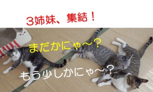 昨日は妹とその娘が来ていました。いつもは、妹が一人で来るのですが、夏休みということで、その娘も一緒についてきていました。夫が「猫アレルギー」の妹が、我が家に来る目的の第1は~その通りよね~(*≧ω≦)まったく人見知りをしないペコは、初めて会った人でも、抱っこOKのフレンドリーな猫です♪なので、昨日も当然、別の用事があって来たのですが…という具合に、再会を喜びあう2人と1匹(*≧ω≦)でもさすがに、2人がかりで疲れたみたいです( ̄▽ ̄〃)特に、姪のテンションが高い(-∀-`; )というペコさんの要請を受けました。そこで…相当ビビリータのトラちゃんですが…3姉妹は、もっとビビリータなんです~(-∀-`; )ここは、上から順番、ということで、接待対応してくれました。随分、緊張してるけど、でもね、タダじゃないじゃない?オヤツもたんまりもらったからいいでしょ( ̄m ̄〃) ★ご訪問ありがとうございます★ ★お手数ですがポチッとお願いいたします♪★ ♪バナー画像は、リクエストされたモノを使用しています♪ ♪毎週日曜日に変更しています♪◆ペコ用:6/29の「何もしなかったくせに♪編」 リクエストいただいた方:flamenco22 さん◆トラちゃんファミリー用:7/4の「嬉しいにゃ~編」リクエストいただいた方:ココナッツ0403さん