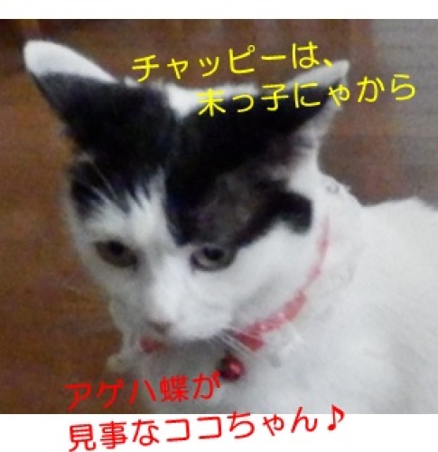 昨日から引き続き、ココナッツ0403さん宅訪問日記です♪さて、たっぷりのランチをご馳走になったあと、ココナッツさん宅へ~またしても、お庭で引っかかりそうになった私の目は、可愛いココちゃんの姿に釘づけになってしまいました♪頭の可愛いアゲハ蝶さんが見事で、愛らしいココちゃん、ご了承いただいて、撮影できた動画をご覧ください(〃▽〃)ちょと警戒していましたが、ココナッツさんが上手に誘って下さって、遊んでいるココちゃんを撮ることができました♪めっちゃラブリ~(ノ≧▽≦)ノこのあと、移動したココちゃんを追う、パパラッチkumaru04!何とか嫌われないように、にじり寄りで近づいているところを、ココナッツさんが、撮影してくださいました(〃ノωノ) 実はこの日、ペコに変装すれば、仲良くなれるかも?と思い、黒系の服で、伺ったのですが…何とか、猫だと思ってくれて?スキンシップ許可を得られました!その旨申し送りもしてくれた、優しいココちゃ~ん(≧▽≦)おかげで、チャッピー君をナデナデすることができました♪この画像(編集も)も、ココナッツさんからいただきました~kumaru04家に、ココナッツさんをお招きした時は、うちのトラちゃんファミリーの愛想の無さに恐縮してしまったので、心の広い、ココちゃんとチャッピー君に本当に感謝感謝です♪はいはい、写真撮らせてくださいね♪実は、うちのお父さんは、チャッピー君の大ファン♪こんなバッチリカメラ目線の画像を見せたら、感激のあまり、卒倒するかもしれません( ̄m ̄〃)えぇ、待ちますとも♪おっと~、冷静なココちゃんチェックが入りましたね(*≧ω≦)さて、ここで、おふたりにお持ちした、プレゼントのお披露目でっす♪これは、やはり仲良くしていただいている、naenataさんの新作です!フリース素材に、中綿が入っているキュートで暖かいベストです♪ココナッツさん宅を訪問するにあたり、ちょと早いですが、クリスマスプレゼントをお持ちしたいと考えていたところ、絶妙のタイミングで、ショップにアップされたので即ゲット(。ゝ∀・)ペコさんの言う通り、着用モデルは、naenataさん家のなーたちゃん♪同じ色白のココちゃんも、きっと似合うはず~しかも、ココちゃんのフリースには、ネーム入り~タワーの上で、長し目をくれているアーミーハンターは、チャッピー君です(*≧ω≦)この柄は、naenataさんセレクトなんですよ、センス抜群!ふたりとも、気に入って、着たまま寝んねしてくれたそうです♪あ~、良かったぁ∩( ´∀`)∩It continues to next time. ★ご訪問ありがとうございます★ ★お手数ですがポチッとお願いいたします♪★ ♪バナー画像は、リクエストされたモノを使用しています♪ ♪毎週日曜日に変更しています♪◆ペコ用:8/16の「お父さんの手に顎のせ編」 リクエストいただいた方:flamenco22 さん◆トラちゃんファミリー用: 9/12の「にゃは~編」リクエストいただいた方:元お蝶夫人 さん
