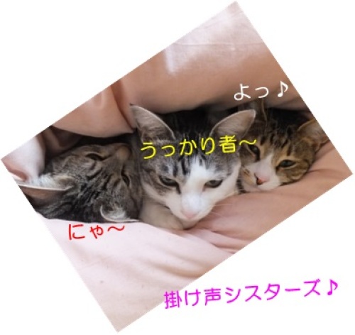 オンナ心といえば~そうそう、秋の空はカラッと青空が見えたかと思ったら、今日はもう、まったりしたくなる、雨曇りというお天気ですね~だから、トラちゃんファミリーは今、こんな感じです(*≧ω≦)眠いと、誰も鳴いてくれないんですよね~(-∀-`; )ということで、皆さま、素敵な休日をお過ごしください(=^・^=) ★ご訪問ありがとうございます★ ★お手数ですがポチッとお願いいたします♪★ ♪バナー画像は、リクエストされたモノを使用しています♪ ♪毎週日曜日に変更しています♪◆ペコ用:8/12の「お父さんに抱っこ編 リクエストいただいた方:レオン&まいあ さん、元お蝶夫人 さん◆トラちゃんファミリー用:9/5の「3姉妹セーラー服編」リクエストいただいた方:レオン&まいあ さん、flamenco22 さん