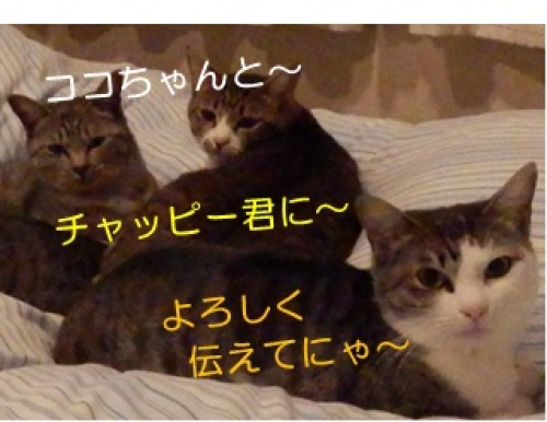 何度も何度も書いてますが~トラちゃんルームは、我が家で一番日当たりが良いです♪おや、チャコ、珍しいじゃないの?ゴマちゃんエリアで、ゴマちゃんとツーショットとは(〃▽〃)そうね、このところ、いつも、トラちゃんが使ってたもんね~仔猫の頃から、チャコが一番ゴマちゃんと仲良しなのにね( ̄▽ ̄〃)チャコは優しいね~(*´ω`)で、トラちゃんがどこにいるかというと…乾燥機稼働中のお父さんベッドで、とらぞーきゅんと寛いでますね~なんか、チャコがひとりぼっちで可哀想かな~…と、思いきや♪おぉ♪ミラン、ナイスタイミング♪そういえば、ゴマちゃんエリアでの、チャコとミランのツーショットも久しぶりだったね(≧▽≦) ★ご訪問ありがとうございます★ ★お手数ですがポチッとお願いいたします♪★ ♪バナー画像は、リクエストされたモノを使用しています♪ ♪毎週日曜日に変更しています♪◆ペコ用:8/17の「ライオンちゃんと添い寝編」 リクエストいただいた方:元お蝶夫人 さん◆トラちゃんファミリー用: 9/13の「荒巻猫編」リクエストいただいた方:flamenco22 さん