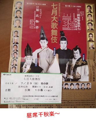 翌29日、台風12号が西日本でおかしな動きを見せている頃、都内はピーカンという、皮肉( ̄  ̄;)せっかく花火のために取った部屋なのに悔しいにゃ~…と、諦めきって、やけに申し訳ない気分になっていた私ですが、プロの交渉術を発揮したレオン&まいあさんは、連泊することに!おぉ~これで、確実に花火が観られますね(〃▽〃)ということで、ふたつめの目的も果たせそうなので、安心してみっつめの目的、七月大歌舞伎の昼席・千秋楽へGO!演目は、三國無雙瓢箪久(さんごくむそうひさごのめでたや)です夜席の源氏物語は、naenataさんがご覧になってらっしゃるのですが、先日の女子会で、夜席のチケットをゲットした旨伺い、やっぱり気が合うなぁ~と思ったのでした( ̄m ̄〃)さて、前半は海老蔵が孫悟空に扮しての宙吊りもあり、ダイナミックで楽しかったです~(^^♪幕間のランチは、歌舞伎座2Fでいただきました。白いご飯が食べたかったので、余計美味しかったです。食後は後半の舞台です。前半の孫悟空のお話は、信長の小姓・森蘭丸の夢だった~というところから、清須会議へとお話が進みます。水をふんだんに使った、豪快な演出あり、歌舞伎初心者にもわかるような、楽しい言い回しあり、さすが、成田屋。引き込まれてしまいました(^^♪歌舞伎を観終えたら、昨夜のリベンジ、花火です。オヤツなどなど買い込んで、ホテルへリターン♪せっかくホテルからゆっくり観られる機会なので、うちのお父さんはもとより~観光で東京に来ている、レオン&まいあさんのお知り合いご家族もお誘いして、皆で楽しく鑑賞することができました♪窓がUVカットガラスなので、正確な色が出ませんが、実際はもっと鮮やかでもっと近く見えました~去年は、宇和島で船上花火を観ることができて、今年は、隅田川の花火をホテルで鑑賞!2年連続で貴重な体験ができました、レオン&まいあさん、本当にありがとうございました(〃▽〃)それと、今回は全にゃん制覇にあと一歩だったので~お忙しいと思いますが、また是非、いらしてくださいね♪ ☆ご訪問ありがとうございます☆ ☆お手数ですがポチッとお願いいたします☆にほんブログ村