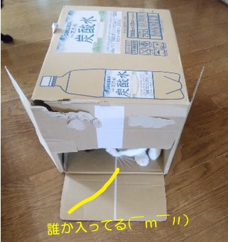 お父さんも私も炭酸水が好きなものですから、今年は酒量ならぬ、水量が上がっております(^^:;なので、いつにもまして空きダンボール箱の発生率が高く、その度に一時にゃんずにレンタルしております。ふむ、お手手が真白なので、チャコかミランでしょう。と、下がっているドア?を持ち上げると~うん、やはりミランでしたか。って、え?箱のチェック~一体、空きダンボール箱の何をチェックするのでしょ?正直に言いなさいな。Q.にゃぜ、ダンボール箱にはいるにょか?A.そこに、ダンボール箱があるからだにゃ byミランな~んてね( ̄m ̄〃)などとふざけていたら、またもお子ちゃま・ミツコ登場~この子もダンボール箱もお姉ちゃんたちも好きですから、すぐに真似っこ&ひっつきにきます。と思いきや、ミランが入っているのを確認すると、さっさと2Fへ行ってしまいました。ん~いつもなら、強引に入ろうとする子なのに、不思議です。ミランもちょっと拍子抜けしている模様。これはきっと…ミランと一緒だと余裕がなくて入れないでしゅ~って、思っているのかもね( ̄m ̄〃)以上、ミツコの空間認識能力は高かった、というお話(・´艸`・) ☆ご訪問ありがとうございます☆ ☆お手数ですがポチッとお願いいたします☆にほんブログ村