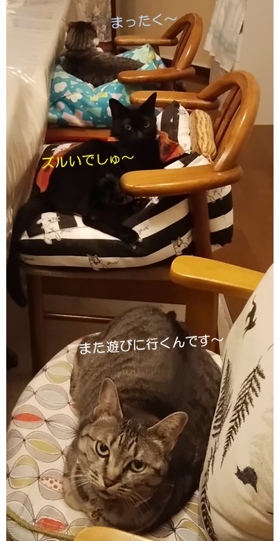 無駄とわかりきってはいるものの、言わずにいられにゃい。チャコさん、テーブルから降りてくださる(^^:;は?順番待ちですとにゃ(*´-ω・)ン?…あ~なるほど(^^:;ビーズクッションがセットしてある椅子、ですね。先日やっと、新ビーズクッションを使えたのに、猫の好いチャコのこと、いつも、お先にどうぞにゃ~って言っててちっとも使えていないようです。もちろん、それと対照的なのはこの子。ミランちゃん、あなたって本当に要領がいいわねぇトラちゃんがトイレに立った途端に、移動したようです。私の椅子の隣なら、いつでも撫でてもらえると気づいたようでご機嫌なお顔です。仕方にゃい、ご奉仕しましょ~ということは、新ビーズクッションは空いているわけです、が。とっくに、ミツコが寝んねしていましたぁチャコって猫が好いだけじゃなくて…トロいのかも( ̄m ̄〃)そう思いつつ、どこにいるのか気になり2Fへ移動しました。…ん~前言撤回します。珍しく、お父さんベッド脇の3弾モック上段で寛いでいました。なので、いつもこの席に陣取っている、とらぞーきゅんは…モックの側で待機していました。この微妙な椅子取りゲーム、全にゃん座れることに、いつか誰か気づいてくれるでしょうか(^^:; ☆ご訪問ありがとうございます☆ ☆お手数ですがポチッとお願いいたします☆にほんブログ村
