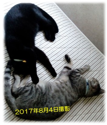 ちょっと前のことです。お父さんの取引先・S様から、大量の中華まんをいただき、例によって空き箱をにゃんずに提供して数日経った時のこと。いつもの空き箱と違い、若干浅いせいか…感覚としては、ベッドのようなのでしょうね。やけにとらぞーきゅんが気に入って、ヘビロテしていました。で、とらぞーきゅんがヘビロテするということは~当然、この子もヘビロテしているわけで( ̄m ̄〃)ひとりで入るには、少し余裕があるせいか、とらぞーきゅんに引っつくチャ~ンス♪と思ったミツコは、積極アピールを展開します。しかし、引っ付き寝んねを論理的に拒否したとらぞーきゅん(*≧ω≦)そりゃ、そうですよね~いくらエアコンが稼働しているとはいえ、とにかく暑い今夏。熱中症予防のためにも、密着するのは勘弁!と思うのは、とらぞーきゅんだけではありません。あ、いや…そんにゃことは関係なく引っ付いてる父娘がいました(^^:;暑苦しいショットで恐縮ですが、冷静に状況分析(おおげさ)したトラちゃんの言う通り、そこには…へこたれない黒猫がいたのでした~(・´艸`・) ☆ご訪問ありがとうございます☆ ☆お手数ですがポチッとお願いいたします☆にほんブログ村