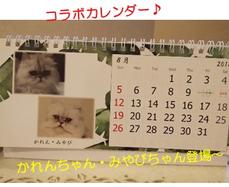 猛暑の文月から、酷暑になりそうな葉月にバトンタッチです~ご報告したいことは多々あれど、月初めと言えばやはり…カレンダーのお披露目ですぅ♪今月もまずは、コラボカレンダーからご覧くださいませ~むふふ、8月のトップを切ったショットは、レオン&まいあさん家の美女姉妹、かれんちゃんみやびちゃんの登場、もうすぐ3歳になられます♪この夏も元気に乗り切っていただければと思います。とか言いながらミッツ、カレンダーを潰さにゃいでね(・∀・;)続いては、涼し気なこちら。ちゅーちゅーがまさかの、シロクマとコラボとは(・´艸`・)これなら確実に涼しくなれそうです(^^)続いてにゃん盾カレンダーは…おぉ♪ココナッツさん家のチャッピーくんでしたか♪にゃ~んて( ̄m ̄〃)でも、いつもココナッツさんお手作りの首輪を着けて、可愛いくカメラ目線をくださるところなど、そっくりでっす♪そして、今月の猫川柳カレンダーは~確かにいつも追い詰められてますわ(^^:; ☆ご訪問ありがとうございます☆ ☆お手数ですがポチッとお願いいたします☆にほんブログ村