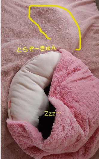 さらに、お布団にはとらぞーきゅんが潜り込んでいます(*≧ω≦)