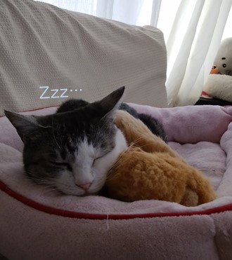 ミツコはお父さんベッドにおいた、にゃん袋さんに潜り込み~