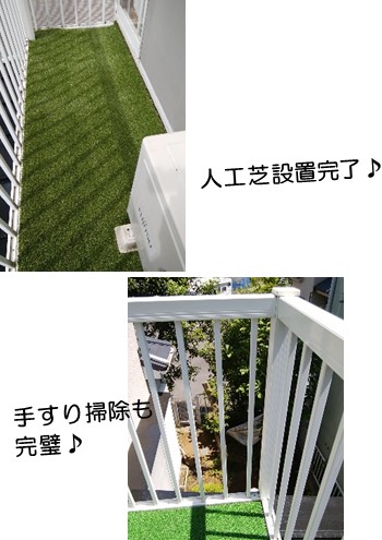 そして、人工芝を設置した後、手すりも掃除してくれましたぁ