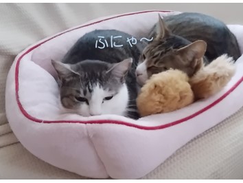 メタボコンビのチャコとミランは、キティベッドでお寛ぎです♪