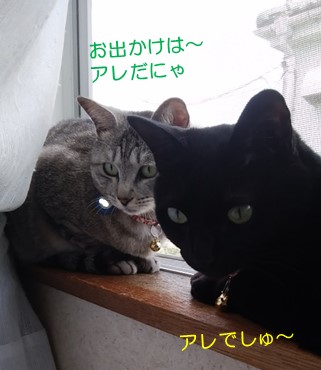 朝ご飯を食べた後、2Fの窓辺で何やら会議中?のにゃんふたり。