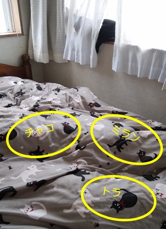あとの3にゃんは、既にお父さんベッドに潜り込んでいます(*≧ω≦)
