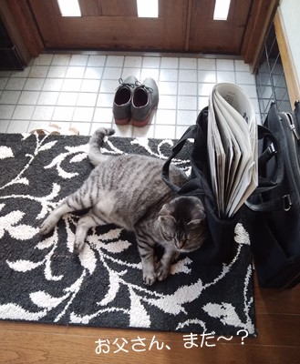 まだ~って、朝食が終わったお父さんは忙しいんですって。