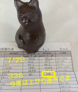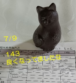 なのでこの「143」というのは健常猫ならば正常値ど真ん中ですが、