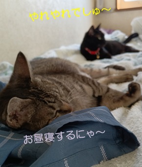 一緒にお父さんベッドでお昼寝です(*´艸`*)