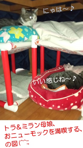 この時季はリビングこたつの中にモックを設置していますが、