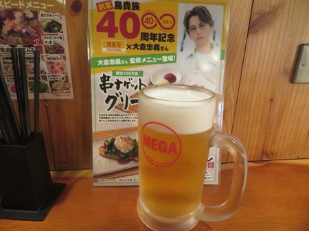 いつも訪問ありがとうございます。クリックしていただけると嬉しいです♥↑+ + + 先日、トリキ(鳥貴族)行ってきました♪トリキの社長さんは、スーパーエイト、大倉くんのお父様。トリキは40周年ということで、大倉くん監修のメニューが出たとか。大倉くん一筋の娘、友達と一度行ってるんですが、私も行きたかったっていうか、飲みたかったので、連れてってもらいました♪私、まずは、メガ金麦♪大倉くん監修「串ナゲット グリーン」大倉くん監修「ニラ玉 グリーン」この2つが、100万食限定、大倉くん監修メニューです。実は大倉くんも、メンカラ(メンバーカラー)、緑なのです💚なので、メニューの末尾が「グリーン」になってます。他に食べた通常メニュー♪北海道 海と大地のポテトサラダふんわり山芋の鉄板焼で、私の2杯目、メガレモンサワー♪娘は飲まないので運転手さんです。これがスパイシーで美味しい!名物「貴族焼き」むね明太マヨ焼と、こんな感じで、大倉くん監修「串ナゲット グリーン」は、×2です。めっちゃ美味しかった♪トリキ、お酒もお料理も390円均一(税込み)なので、ほんとお安く美味しくて最高♪大満足でしたー♪★半額以下!10時〜24時間限定!★フォトプリント ロゴ Tシャツ5470円↓クーポン利用で送料込み 2,280円♪ほぼ毎日更新♪くみ1のROOM始めました。覗いてみてください♥いろんなショップで買い物出来ます♪「ブログランキング」に登録してます。↓ ↓ ↓ほんとに感謝しています今日も応援お願いしますありがとうございます!とても励みになります↓ コチラ、私も持ってま~す♪ ↓入会者全員にポイントプレゼント楽天リアルタイムランキングはこちらからHOMEに戻る