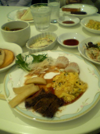 ライブの前は、恒例のスピ友ランチです今日は、梅田から地下鉄で一駅の中津です三井アーバンホテルの最上階のランチバイキングに行きました。メインダイニングの「プレジール」です。満員でした。でも、ミーコさんが予約して下さっていたのでOKスピ友さん、8人で その人数だけでも、楽しいし、嬉しいんですお料理です。常時40種類の・・・と雑誌に載っていたのに・・・ちょっとしか無かったけど私は飲めないのですが、2種類の日替わりワインが飲み放題には、ビックリでしたこんなのを食べましたよ~ステーキは、冷めていました 熱々だともっと美味しいのに。デザートです。アイスを2皿も食べました^^; アイスは係りの人に注文するのですが、一度注文したら「いかがですか?」って注文しないのに二度目が来ました 勿論、頂きました。ここは、バイキングなのに、時間制限がないんです。ゆっくり出来ました。ついでに、チケットも撮りました「入場する時に、切り取られてしまうよ」って、ミーコさんの発言に「ほんまやねぇ」ちょっと早いけど14時半にホテルを出て、南港に向かいましたトレードセンターに行って、ブラブラしました。お茶組と海岸散策組に別れました。どっちも良かったんだけど、お茶組にしたよまだ食べるん?って言われそうだけど、はい、そうですサイゼリアに行きました。注文したのは・・・人気ナンバーワンと書いてあったクリームゼリーだけど、ものすごく大きいので、引いた~皆で苦笑いです。後編に続く