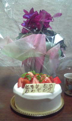 21回目の結婚記念日でしたスピッツは、20周年だから、ちょっと嬉しい今年のケーキです紫色とピンクが混じったような色のシクラメンも買って来てくれました。お花、大好きなので貰うと嬉しい可愛いクッキーも買って来たよ~「1個105円やから、味わって食べてな」だってなんて貧乏くさいもっと高いクッキー食べたことあるし~。夫がこの日を覚えているか、毎年ちょっと心配になります21回共に、忘れたことはないですそう言えば、私が独身の頃、両親の結婚記念日に、ちょっとしたプレゼントをしていましたでも、当の両親は、毎年記念日を忘れていました♪よれよれの幸せを追いかけて・・・♪幸せは、途切れながらも続くのです・・・って歌詞を思いながら、これからも生きていきます。な~んて、ちょっと固いな