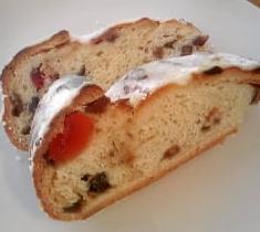 design++dalu++ img赤ずきんちゃんの散・歩・道20日に作った初めてのシュトーレン。ついにカット&試食しました。なるほどケーキではなくパン。周りにシュガーがサクッお・おいしい~これはクリスマスでなくっても食べたいです。ちょっとピンぼけの写真ですが::: シュトレン:::