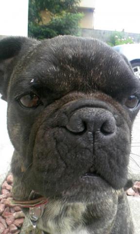 designed by *ま~ぶる*久しぶりにフランチブル&パグのミックスく ろ す 毛大分涼しくなってきたので「フガフガ・・・ヘコヘコ・・・」の声も少なくなってきました。*ま~ぶる*土を掘って 遊んでいたのでえらい顔になってます。*ま~ぶる*これ、違うショットなのに、同じ顔で同じ目線・・・・。