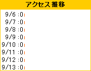 音沙汰無き事態 2006.9.21(木)いやービビったっつーの。どう見積もってもビビったっつーの。楽天ブログをやるのは、これがかれこれ4回目か40回目の僕。飽きては辞め、辞めるのに飽きては始めの繰り返しの僕。そんな世知辛い僕なわけですが、今回、このおニューサイトで初体験したわけですよ。これ、見て。まばたきしないで、これ見て。皮膚呼吸しないで、これ見て。がぼーん !!また更に。げぼーん !!9月6日~9月21日の間、当サイト“黒迷子”に人っ子一人来てないんですよ。何回数えても、人っ子一人来てないんですよ。正にドキドキの初体験。むしろ初初のドキ体験。どれくらいドキドキかと言うと、初めて乗った飛行機の客室乗務員がど・ブサイクだったくらいのドキドキ。「ツチノコに似てますよねぇ」と、必ず対面した人に吐かせるくらいのドキドキ感。あぁ、何もしてないのにWONTED。と、そんな感じで始まった黒迷子ですが、僕が飽きるまで更新は続きます。正確には続くと言われています。また。毎度毎度のことですが、掲示板・コメントの書込みが、なんとなんと!一切受け付けておりませんキャンペーン中。「前から書き込みたくなかったの・・・」「コメントなんて絶対しねぇよ・・・・」と思っていた読者の方々、この機会に書き込まないでみて下さい。断固、書き込まないでみて下さい。御用の方はコチラからメールが送れるシステム。何か御用の際はいつでもメールしてみて下さい。もちろん。できるだけ面白メールが好ましいです。分かりやすく言えば、面白くないメールは好ましくないです。(良い例)・隣の家のババアがジジイになってました。・何だかんだで曾ジジイになってました。・さっき起きたら尿道が増えてました。・私の趣味は細木和子の預金残高予想です。・モチの早喰い競争で優勝しそうになったことがあります。・暇さえあれば眼球をくり抜いて遊んでます。※女性からのメッセージは 読み次第、即お返事出します的精神です。 揉んで下さい系メッセージ大歓迎中。※男性からのメッセージは 気分次第でお返事出します的精神です。 さすって下さい系メッセージ断固拒絶中。まぁ、なんだかんだで読者参加型ブログが出来ればなーっと。読者交えて色んな企画が出来ればなーっと。そしてその結果。国歌の歌詞の意味が少しでも分かるよーになればなーっと。 むぅすぅの意味が分かればなーっと。