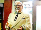 知られざる内面 2006.11.7(火)最近やけに、タコの吸盤に貼り付かれる仕事のオファーがくるため、Wha's job が書けなかったわけですが、昨日ようやく終わったんです。最後に貼り付いてきたタコは、未だに僕に貼り付いたままですがようやく終わったんです。この仕事が終わるまでは、What's job は書いてはいけないという決まりでしたから。仮に書いたことが見つかれば、背中にタコの吸盤を移植させられますから。でももうだいじょーぶ。若干1匹、股間に貼り付いたままですが、仕事は終わったのでだいじょーぶ。なので久しぶりに、What's job を書き殴ろうかと。ジョブ相談者:わかめん’氏『ケンタッキーおじさんの 時給と仕事の詳細を教えてください』彼の仕事の詳細ですよね?分かりました。一般的には、カーネルサンダースと呼ばれているようですが、本名は全然違います。和田 弘。これが彼の本名。和田 功一と和田 美香子の間で、予想外の体位の末、生まれ落ちた彼。小学4年生の頃、校内のプールの水を飲み干し、肥満体質に変貌した彼。そんな彼のことが知りたいと?今では弘がケンタッキーの前に当たり前のように立っていますが、昔は違ったんですよ。前まではあの役を松林 ちょいの助 が務めていたんです。ちょいの助に弘が言い寄ったんですよ、俺にやらせろと。そこに立つべきはこの俺だと。ちょいの助も根っからの頑固者でしたから、簡単に譲るはずもなく、勝負して勝った方があそこに立つことになったわけです。で、どんな勝負で勝敗を決めたかってことですが、どっちの方が心が汚いか? 対決でした。当然、弘が勝利したからこそ、今ああやって立ってるわけですが、尋常じゃなく弘の心は汚かったんですよ。汚すぎるにもほどがありましたから。当サイトのメインカラーは黒を使っていますが、その黒よりも黒かったです。例えるなら、墨汁をイカ墨で割り、その上にホクロを92兆個のせた感じの黒さ。着ている白い服とは真逆の、彼の心の黒さ。ケンタッキーを訪れた子供達が、よく弘に触れたりしていますが、ちょーデンジャラスですよ。触れられた弘が、何を考えてるか分かりませんもん。子 「わーい、カーネルサンダースダー♪」弘 (うっさいクソガキ! お前のチキンにヒ素入れるぞ)子 「ねー、このおじさんと写真撮ってー♪」弘 (その写真は明日のお前の葬式に使うんだな)子 「すごーい、このメガネちゃんと度が入ってるよ」弘 (君の目と交換しようか?)あぁ、怖い。彼の時給ですが、心が汚くなればなるほど上がっていく仕組み。1キタナイにつき、29円アップ。今の弘のランクは104キタナイですから、3016円/h が弘の懐へ入っていきます。俺は105キタナイ以上ある!という方は、弘に挑戦してみてはいかが?What's job.って何?