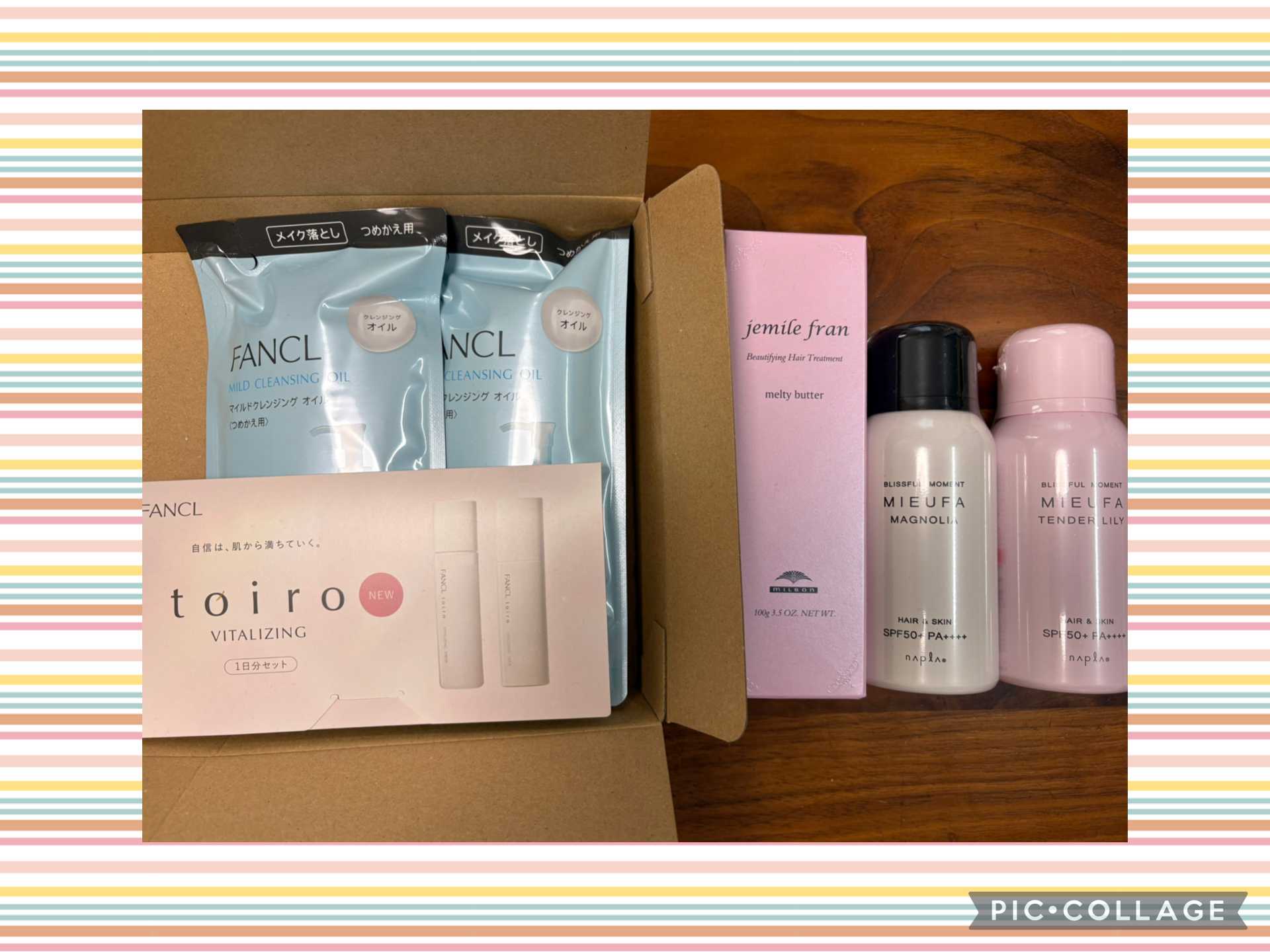 色々届いてます😆何度目かわからないリピ〜トイロバイタライジングのサンプルいただきました♡夏はこれ香り強めだけどサラサラになります✨髪と肌のUVスプレー写真撮ってないけど最近ちいかわコラボのラブライナー買いました。落ちない!すごい!!ちなみに楽天だとノーマルの方が安いです💦愛用品コーセーのメイクフィットスプレーコスデコも使ってますご覧いただきありがとうございました♪