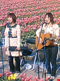 今日は、但東のチューリップ祭りに行ってきました。かなり綺麗に咲いてましたよ。今年の絵は、こうのとりですよ。綺麗に咲きほこってました。その会場で、新しいいい歌を歌う2人組みを見つけました。僕の中では、かなり心に優しく入ってくるいい歌を歌いまた、いい声を聞かしてもらいました。谷村有美以来の、いいなって思える人です。その2人は、「想ワレ」といって、かなりお勧めな2人でした。