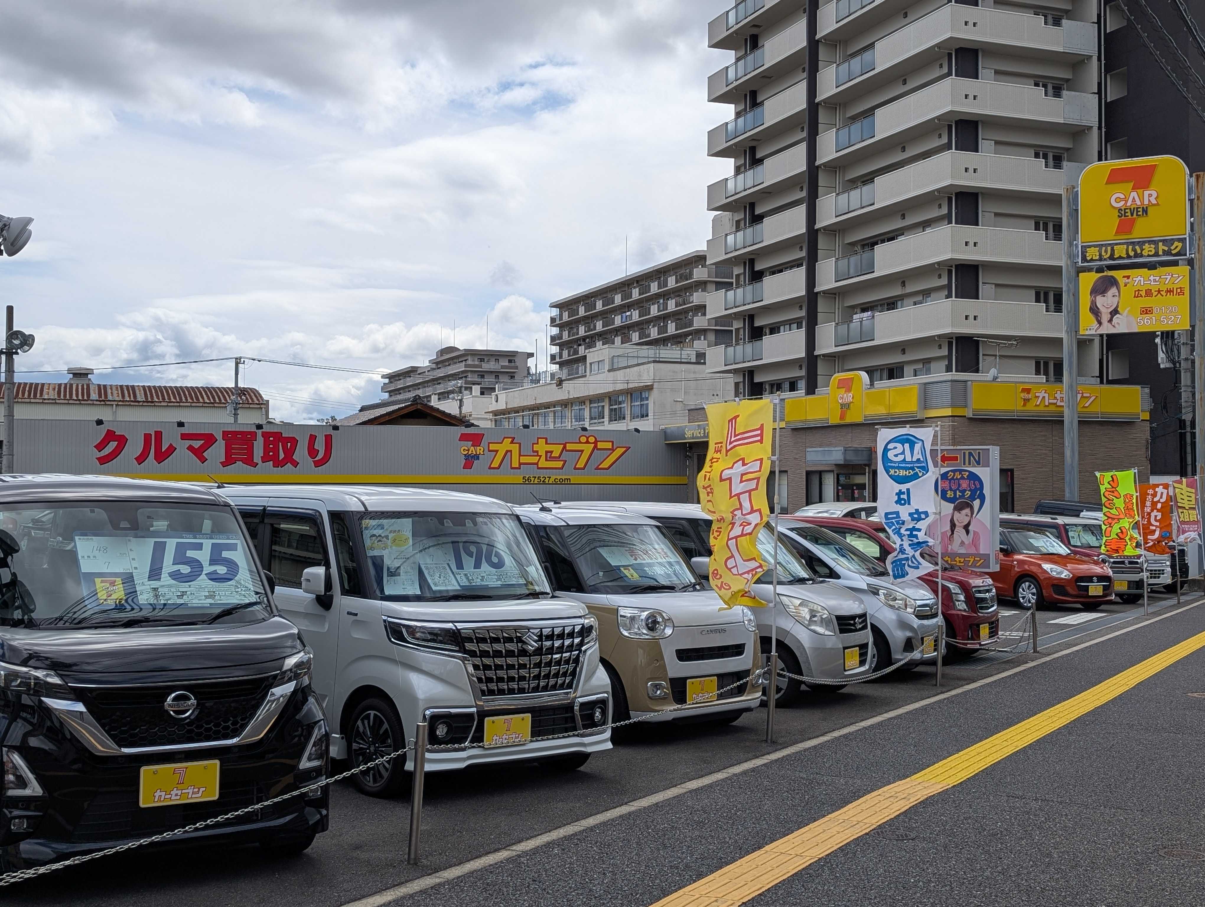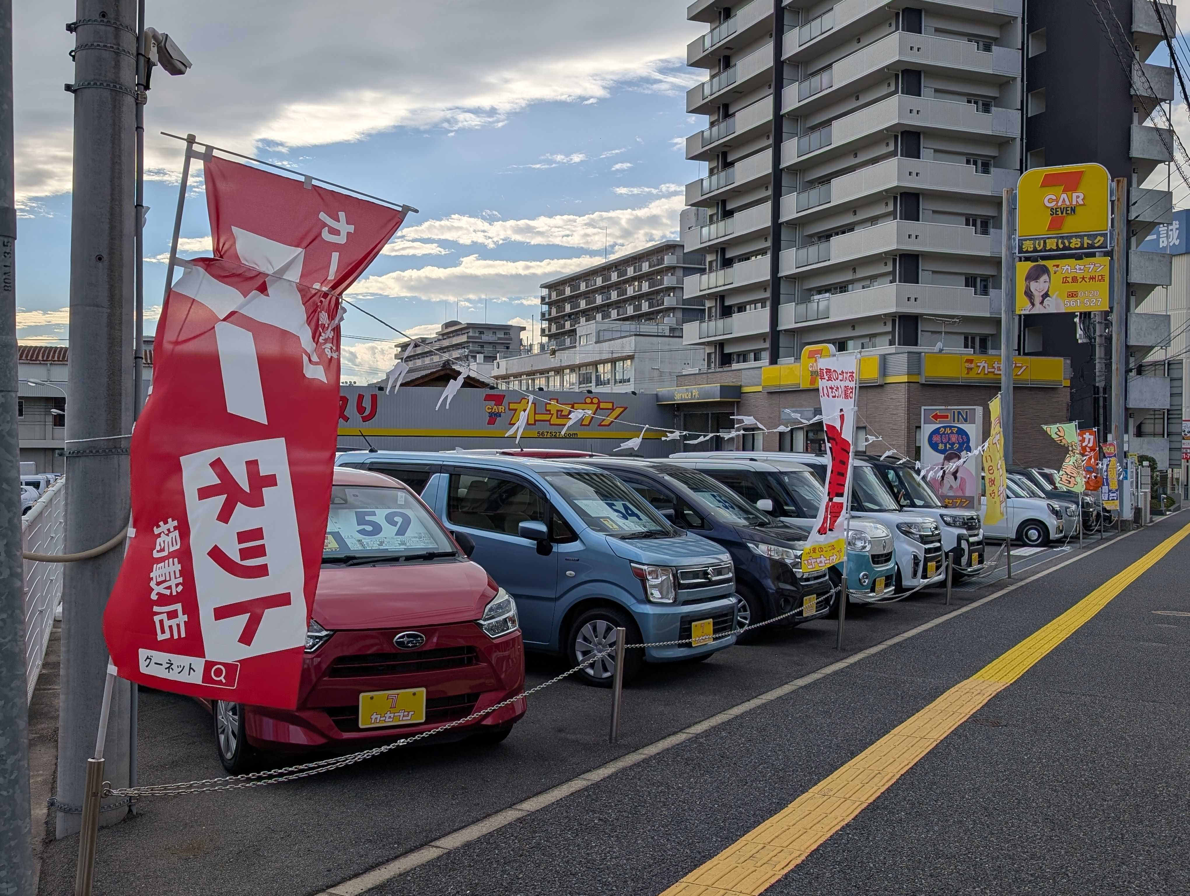 クルマ♪売り買いおトク!!カーセブン広島大州店☆劇場☆「くるまややまちゃん」日記カーセンサーNETも随時更新中!^^!お疲れ様です!^^!昨日はよく雨が降りましたが、今日は少々肌寒いながら天気も回復しました♪少数精鋭で営業しておりますが、本日は営業スタッフがお休みなため、店長の僕と事務スタッフの二人だけでの開店となりました☆朝から店舗の写真をスマホで撮影し、行き交う幹線道路からの見栄えをチェックしますv^^v色々な角度から店舗を直接見る ではなく、写真に撮って出来るだけ客観的に見ます♪納得したところで、次は展示車両の値段を調べ、高すぎないか?安すぎて怪しくないか?相場とにらめっこです。からの保険の満期案内や、来電対応、飛び込みのお客様接客対応、買取査定などなど・・・・二人だと目がまわる程に忙しい一日になります。そして捌ききれない業務も出て参りますが、翌日で良い仕事は後ろに回し、ちぎっては投げ、ちぎっては投げ、ふと我に返って気が付けば夕方でした(笑さて、今年は新しい仲間が増える予定です♪早く一人前になって、僕を楽にしてください!!(笑「働く」とは「傍楽」とも傍(そば)に居る人を楽にしてあげることが出来るのが良い働き方だと勝手に信じてます^^/にほんブログ村にほんブログ村にほんブログ村