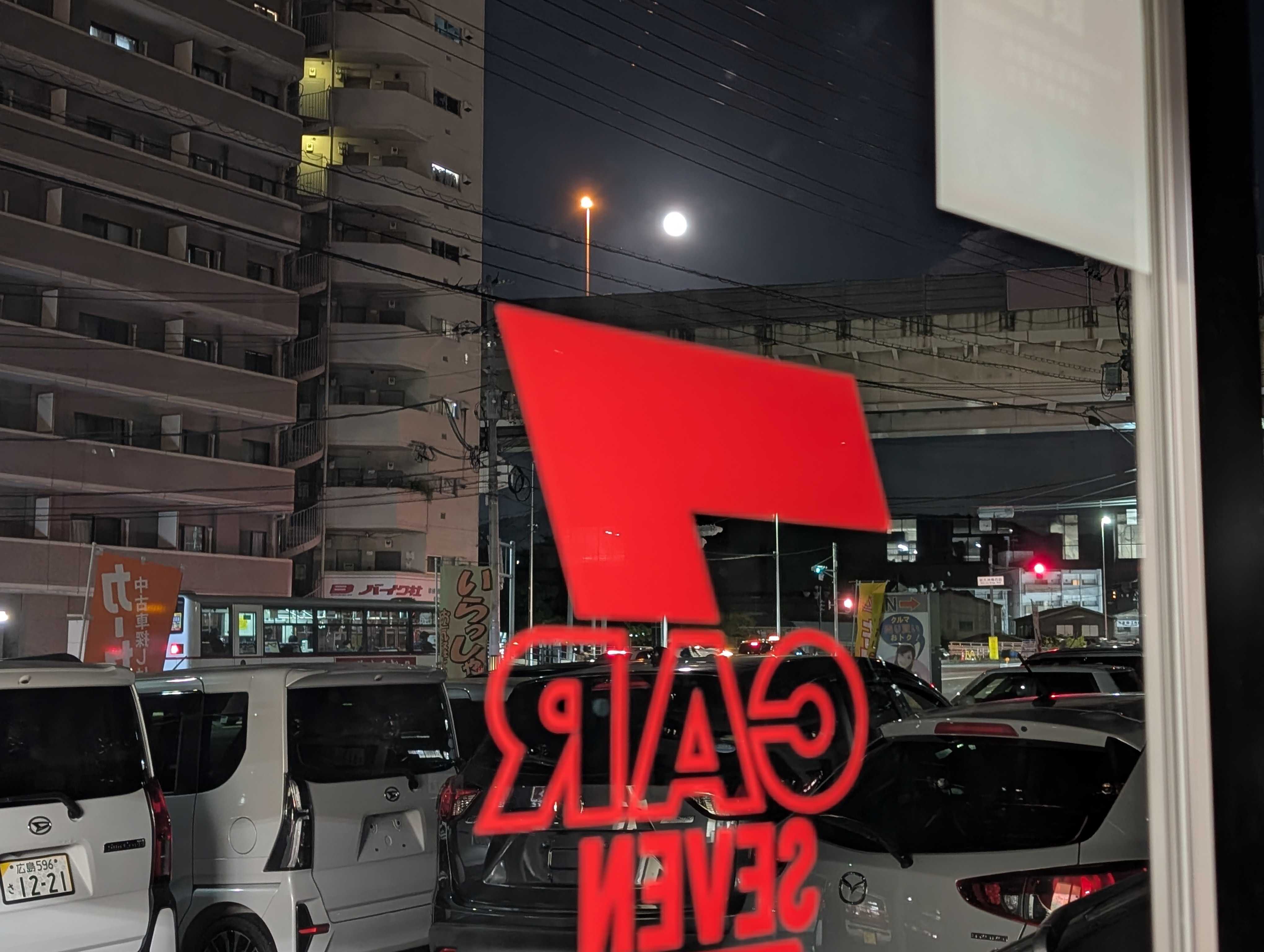クルマ♪売り買いおトク!!カーセブン広島大州店☆劇場☆「くるまややまちゃん」日記カーセンサーNETも随時更新♪お疲れ様です。昨日夕刻、お仕事しながら・・・「ボチボチ終わりの時間じゃない?」「秋の夜長とは良く言ったものだね~」「辺りがなかなか暗くならないね~」そんな他愛もない話をしながらふと外を見ると・・・そっかぁ!!今日は今年最後のスーパームーンだ!^^!って言いながら携帯で写メ♪一眼レフカメラでは無いので、全く綺麗には撮れませんが、大きい月とその明るさは伝わりますでしょうか?近くを通る首都高速の街灯にも全然引けを取らないほどの光量です☆今年も残すところ二月を切りました。ぼちぼち冬支度を始めて年末年始の準備にとりかかりますか?にほんブログ村にほんブログ村にほんブログ村