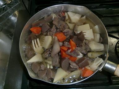 只今 牛すじ煮込んでます~ こんな感じ 最近 我が家はこれにはまってて・・・ 主人はもとより、じいちゃんもばあちゃんも そしてたまに帰る子ども達も妙に気に入ってくれてます やのつまみにもなるし、もちろんのおかずにも・・ ちょっと手はかかるけど多めに作ってちょいちょい食べてます 今作ってるのは明日の晩ごはんあたりにほどよ~い味になってます ちなみに今日の材料は・・・ 牛すじ、にんじん、筍、ごぼう、こんにゃく です 調味料は・・だし汁、白だし、酒(完全に目分量です)
