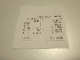 先日 コツコツ貯めてた小銭貯金を換金しに行きました 毎日ほんとに少しずつだったのであまり期待してなかったのですが・・ 何と・・ 21,052円 結構ありました~ 私にとっては大金です~ 主人は「うまいもん食お~ぜ!」って言ってましたが いえいえ・・ ここはひとつきっちり貯金させていただきました 来年の1月は大事な娘の成人式 素敵な振袖のため頑張って貯めてる貯金にプラスしました まさに ちりも積もれば山となる でした~