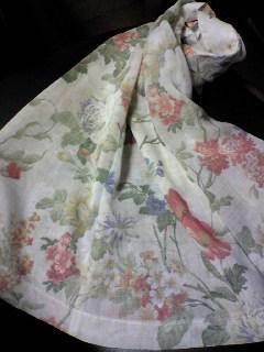 昨日はずっと縫い物していました。それで肩がこって頭が痛くなって、日記も書かずに寝ちゃったんですけど。洋裁も久しぶりすぎて、勘が戻るのに時間がかかってます。(^^;)ミシンも上糸と下糸の調子がちゃんと合わせられなくて、縫い目がおかしかったり。なにごとも、続けてないとだめってことですね~。今取り組んでるのが夏用の薄い生地でつくるツーピースですが、なぜ何年もほったらかしにして来たか、思い出しました。スカートに裏地をつけるか、つけるにしてもどんなものにするかで悩んでいつもそこでつまずいて、やめてたんでした。もう悩んでても進まないので、今回は手元にあった裏地を断ってつけてみましたよ。そしたら・・・・なんか、裏地をつけてもまだ透けてる。裏地が薄すぎたんだわ。うーん。断つ前にチェックしたときは気付かなかった。どうしてだろ。不覚。ともあれ、これではさらにしっかりしたペチコートか長いスリップを着ないとまずいことになります。夏の暑いときにそんなのやだな~って思って、裏地をはずして縫うことにしました。で、少し厚めのサテン生地か何かでアンダードレスを縫って、それを下に着たらいいかなって思ってます。スカート部分ももうすぐ仕上がるので、後はブラウスですわ~。初めてフリルの襟をつけますが、さてどうなるかな。こんな生地です~。