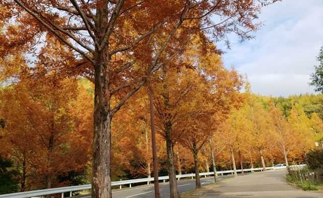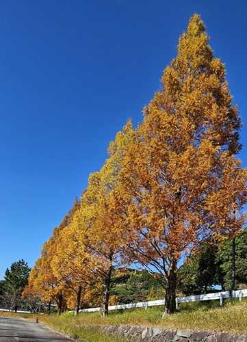11月14日に夫と出かけたメタセコイヤ並木は まだ中途半端な色付きでした。