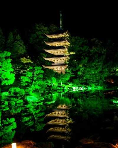 ナンチャンたちが行った瑠璃光寺五重塔は ライトアップされた夜の時間でした。