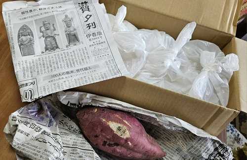 滋賀県の友人、mimiちゃんから美味しい新米と紅はるかの頂き物琵琶湖の湖北に位置するmimiちゃんのお宅で ご主人が育てておられる滋賀こしひかりは 甘くて艶があり物凄く美味しいのです。大きな紅はるかは蜜があふれています(*^^*)mimiちゃんの旦那さま、mimiちゃん、毎年ありがとうございます娘からも新米5キロを貰いましたが、今新米を食べてしまうとブレンド米に戻れないので とにかく先にブレンド米を食べなきゃね(^-^;サツマイモはサツマイモご飯にしたことは書きましたがホクホク甘いお芋をふかして食べて それから思いついて「サツマイモの焼きコロッケ」にしました。サツマイモはマッシュしてコロッケを作る手順です。仕上げに小麦粉・卵・パン粉ではなく 丸めて小麦粉をまぶして焼くだけです。パン粉や揚げ油を大量に使用せず コロッケほど手間もかかりません。梨を作っている友人からは いろんな梨をあきづき、幸水、甘太、だったかな?美味しく食べ終わりましたご夫婦で山口県に2泊3日で行くという友人に 山口の同級生に頼んで沢山の観光パンフレットを送って貰いました。県内の道の駅や全体地図などもあり 何でもネットで調べられる時代ですが地元民情報をとっても喜んでくれて これを頂きました。ありがとう、重宝してます。山口の旅、楽しんで下さいね白い彼岸花が あちこちに咲いているご近所さんの裏庭の垣根沿いにはコスモスが咲いてます。我が家のクレマチスは春よりも小さい花が10個も咲いていて 季節を間違えてる?ばらの丘公園のブルーサルビア。スーパーに行ったらおはぎが売っていて つい買ってしまった(^-^;雨で涼しい日です。このまま涼しくなってくれるのかしら。